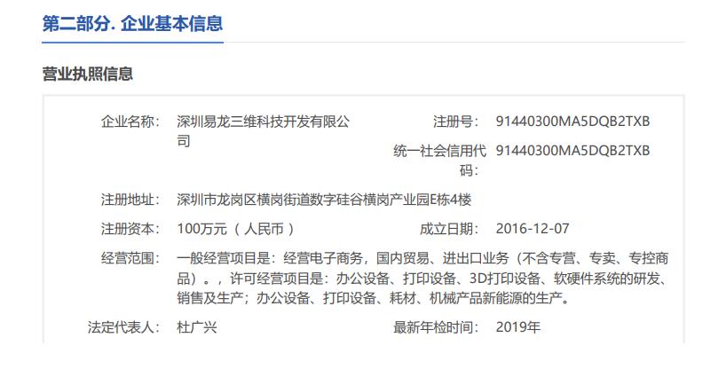 深圳易龍三維科技開發(fā)有限公司于2016年12月在深圳正式注冊,是昆明博易創(chuàng)科技開發(fā)有限公司全資控股公司。2003—2006年前身是昆明博易創(chuàng)研究所,2006年正式注冊昆明博易創(chuàng)科技開發(fā)有限公司。2003—2006年開創(chuàng)制相機或叫萬能打印機,后統(tǒng)一用詞萬能打印機、物體打印機。2009—2012年走上了快速發(fā)展階段,市場和名氣在國內(nèi)迅速提高,2011年日本商家主動到中國來代理我們的產(chǎn)品,三個月后風靡全日本。2011年首家推出小型UV打印機,以后進入輝煌階段,在全國以昆明為總部的前提下陸續(xù)設(shè)置上海、深圳辦事處。